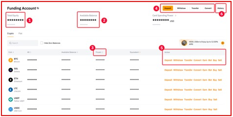 6. لأجل قروض العملات الرقمية، يمكن للمستخدمين استخدام أموالهم في حساب التمويل لاقتراض الأموال أو سداد القرض أو تعديل مقدار الضمان.