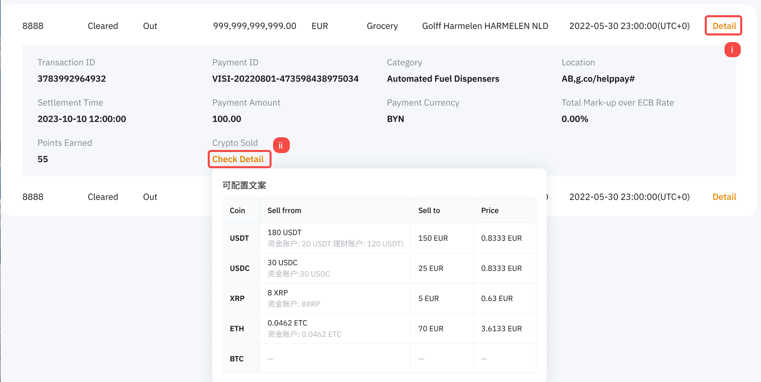 إذا تم تمويل معاملة بطاقة Bybit الخاصة بك بالعملات المشفرة، يمكنك العثور على تفاصيل الصرف بتوسيع تفاصيل الطلب والنقر على تحقق من التفاصيل تحت العملات المشفرة المباعة.