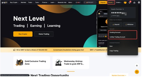 الخطوة 1: انقر على الأصول → حساب التمويل أو حساب التداول الموحد لدخول الصفحة.
