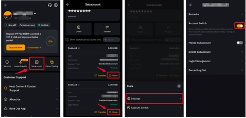 تقدم Bybit الآن للمستخدمين ميزة التبديل بسهولة بين حساباتهم المختلفة باستخدام وظيفة التبديل بين الحسابات. ستتمكن من التبديل بين حساباتك بثلاث (3) طرق مختلفة: