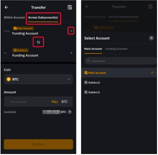 لا يمكن للحسابات الفرعية القيام بأي إيداعات أو سحوبات للعملات الرقمية. ومع ذلك، يمكنك تحويل الأموال من الحساب الرئيسي إلى حساباتك الفرعية.
