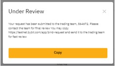 ملاحظة: للاستفسارات حول وقت الموافقة على طلب الربط الخاص بك، يرجى التواصل مع فريق التداول مباشرة.
