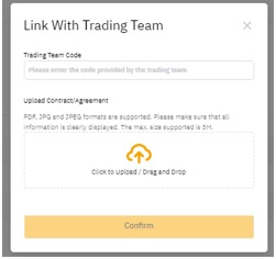 الخطوة 2: أدخل رمز فريق التداول وقم بتحميل عقد الاستثمار أو الاتفاقية.