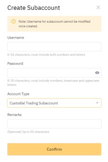 بعد إنشاء حساب تداول وصائي فرعي بنجاح، يمكنك ربط فريق تداول به. يرجى ملاحظة أن حساب التداول الوصائي الفرعي لا يملك صلاحيات إدارة API.