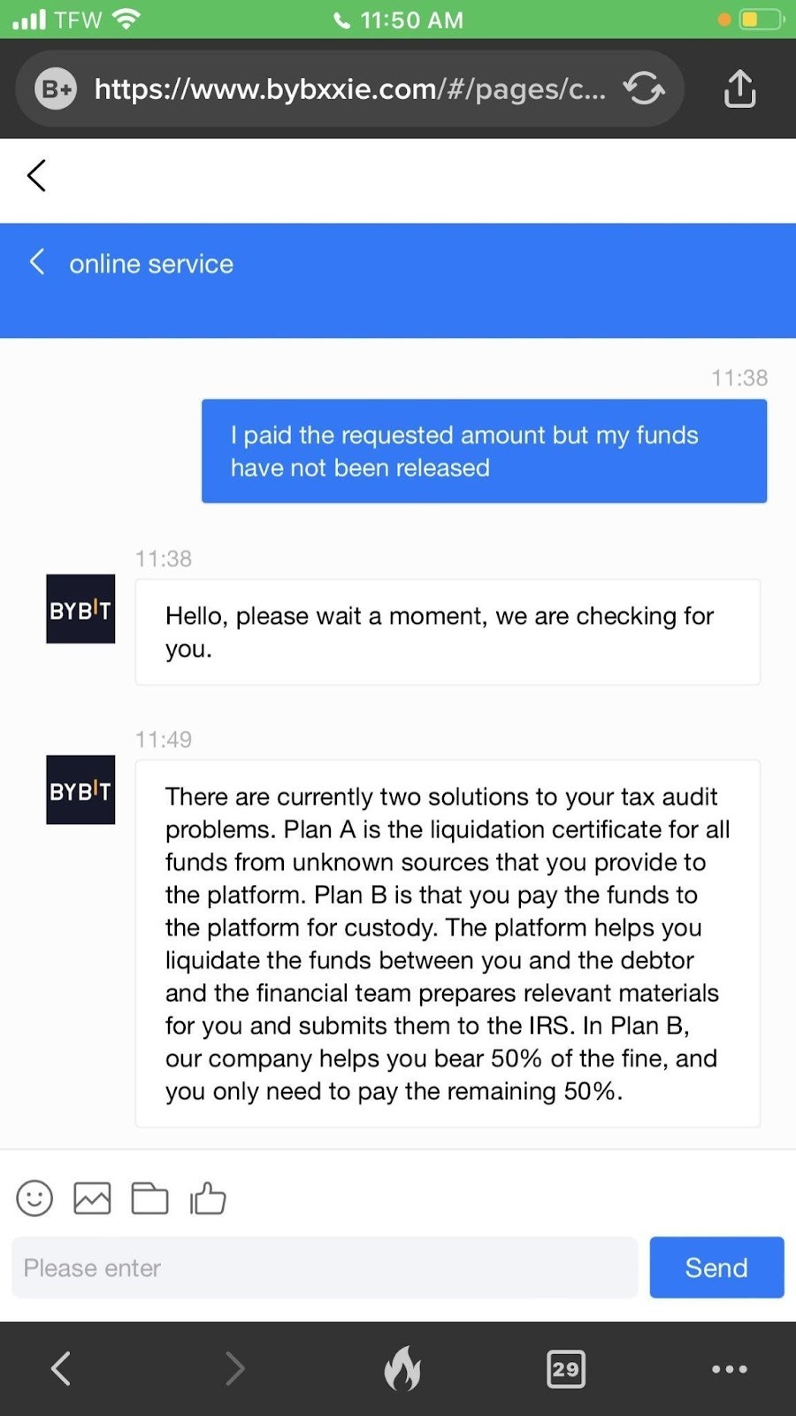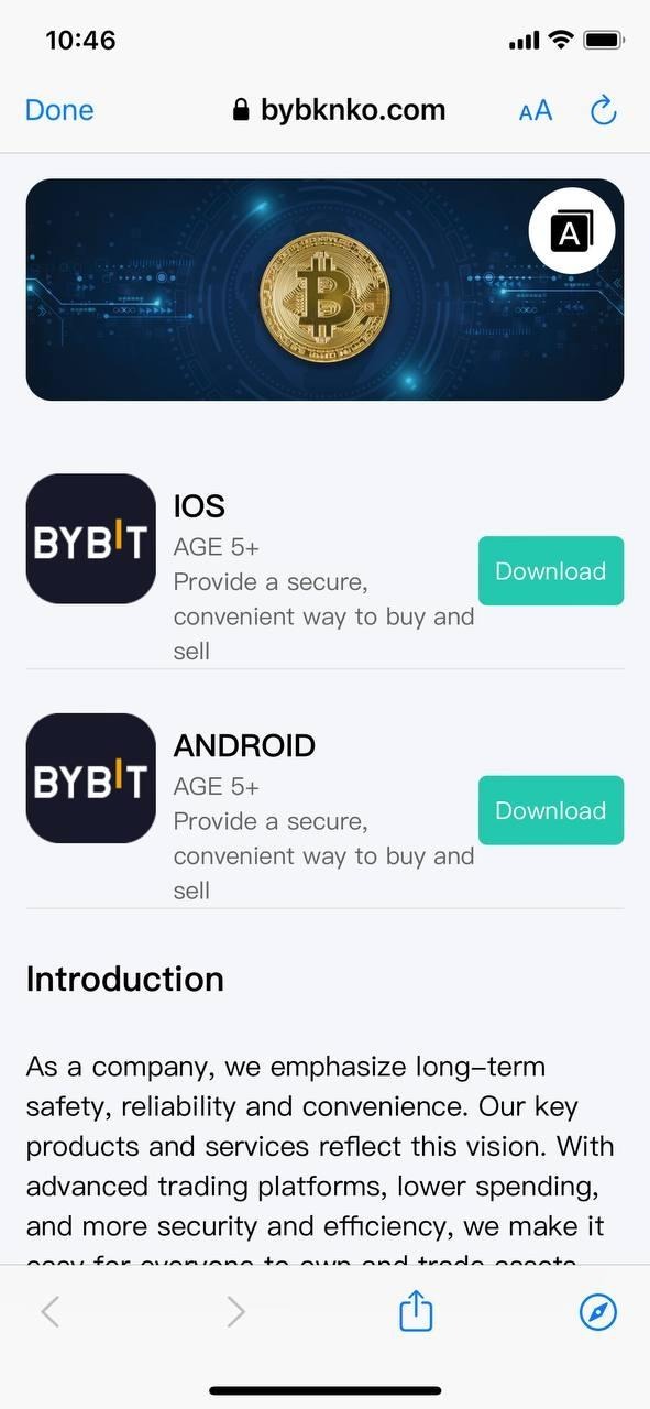 السيناريو 1: موقع ويب أو تطبيق خداع مزيف من Bybit مع دعم Fake Bybit