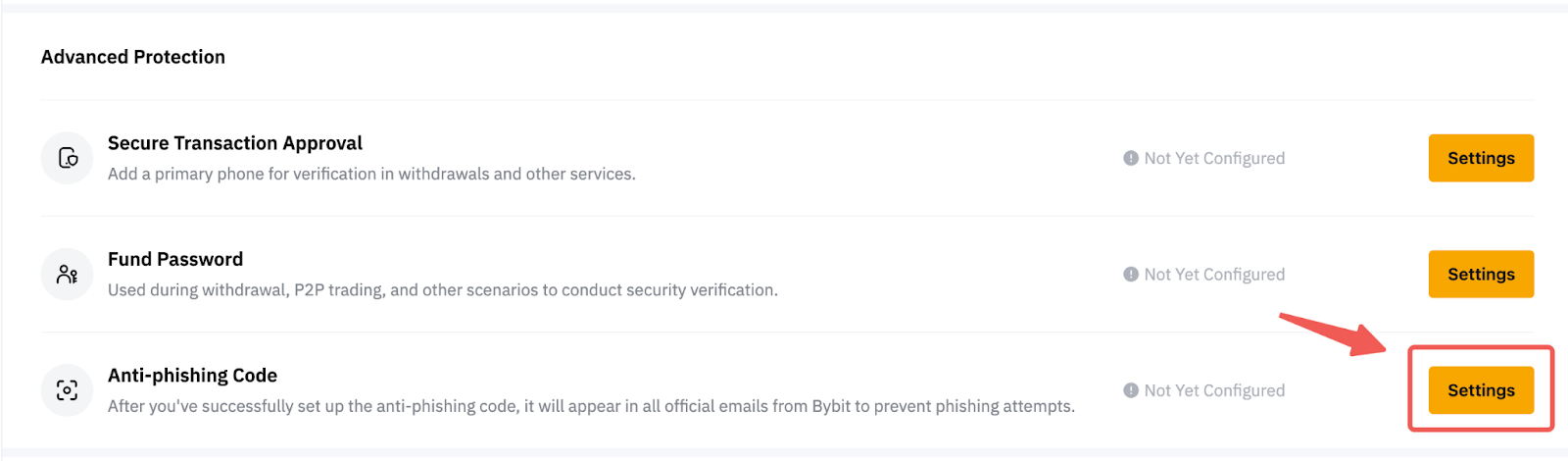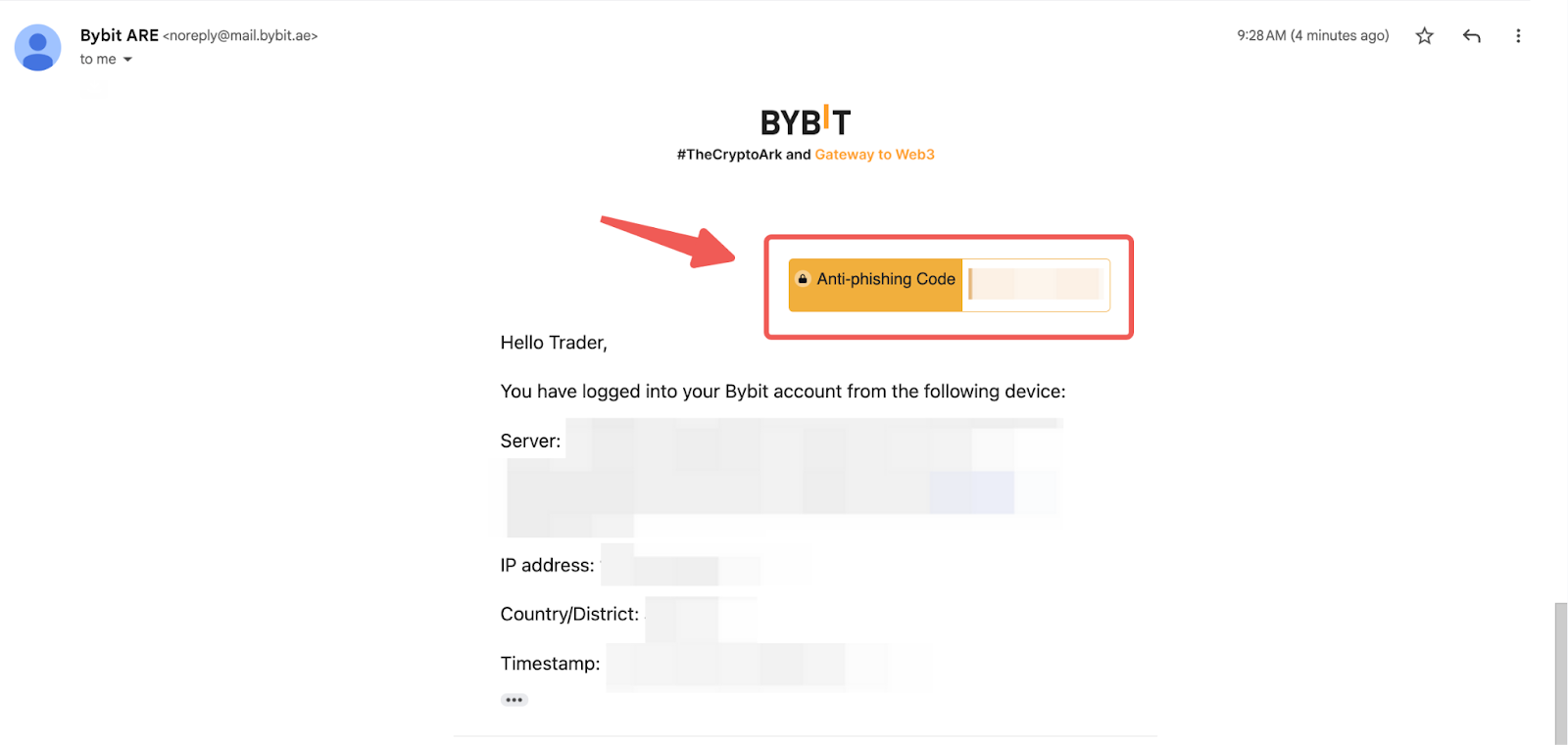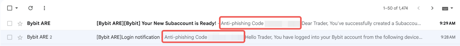 رمز مكافحة التصيد الاحتيالي من Bybit هو ميزة أمان تتألف من مجموعة فريدة من الأحرف الأبجدية الرقمية والخاصة. بمجرد التنشيط، سيظهر هذا الرمز المخصص في جميع رسائل البريد الإلكتروني والرسائل النصية الرسمية لـ Bybit بعد ذلك، مما يسمح للمستخدمين بالتحقق بسهولة من صحة المعلومات التي يتلقونها.