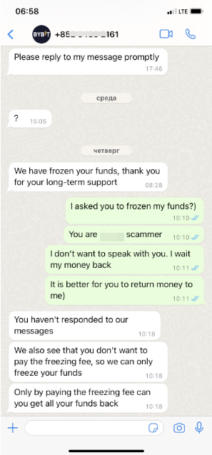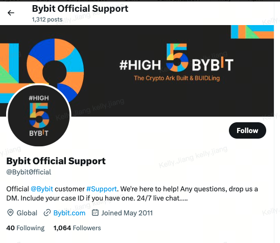 1. الأفراد الذين ليسوا موظفين رسميين لدى Bybit ولكنهم يعملون كدعم عملاء للاتصال بالمستخدمين عبر وسائل التواصل الاجتماعي مثل Telegram أو WhatsApp أو X (تويتر سابقًا) أو أكثر.