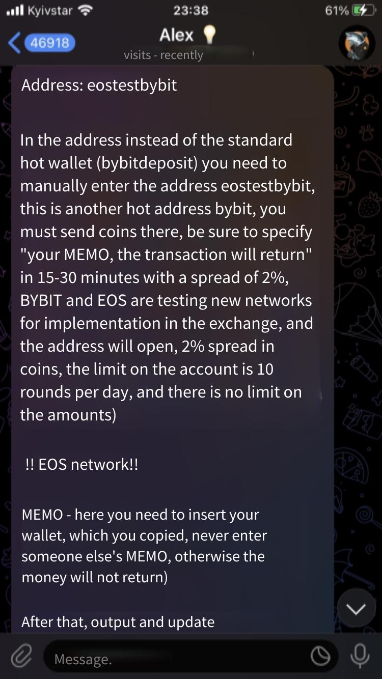 السيناريو 6: اطلب من المستخدمين تحويل الأموال إلى عنوان محفظة Bybit مزيف