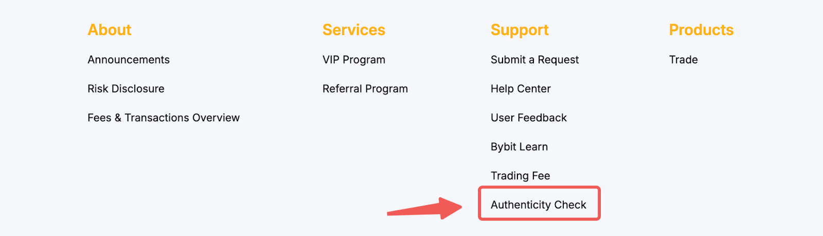 يمكن الوصول إلى هذه الوظيفة بسهولة على الموقع الإلكتروني من خلال الانتقال إلى قائمة Bybit الرئيسية أو التمرير لأسفل إلى أسفل صفحة الويب.