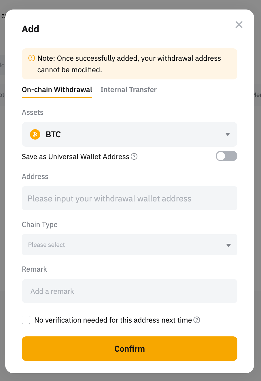 For more information on how to manage your withdrawal address book, please refer to this article.