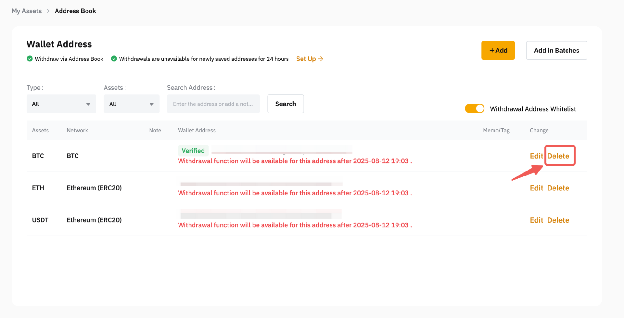 Here's a step-by-step guide to adding and managing your withdrawal addresses in your Bybit account.