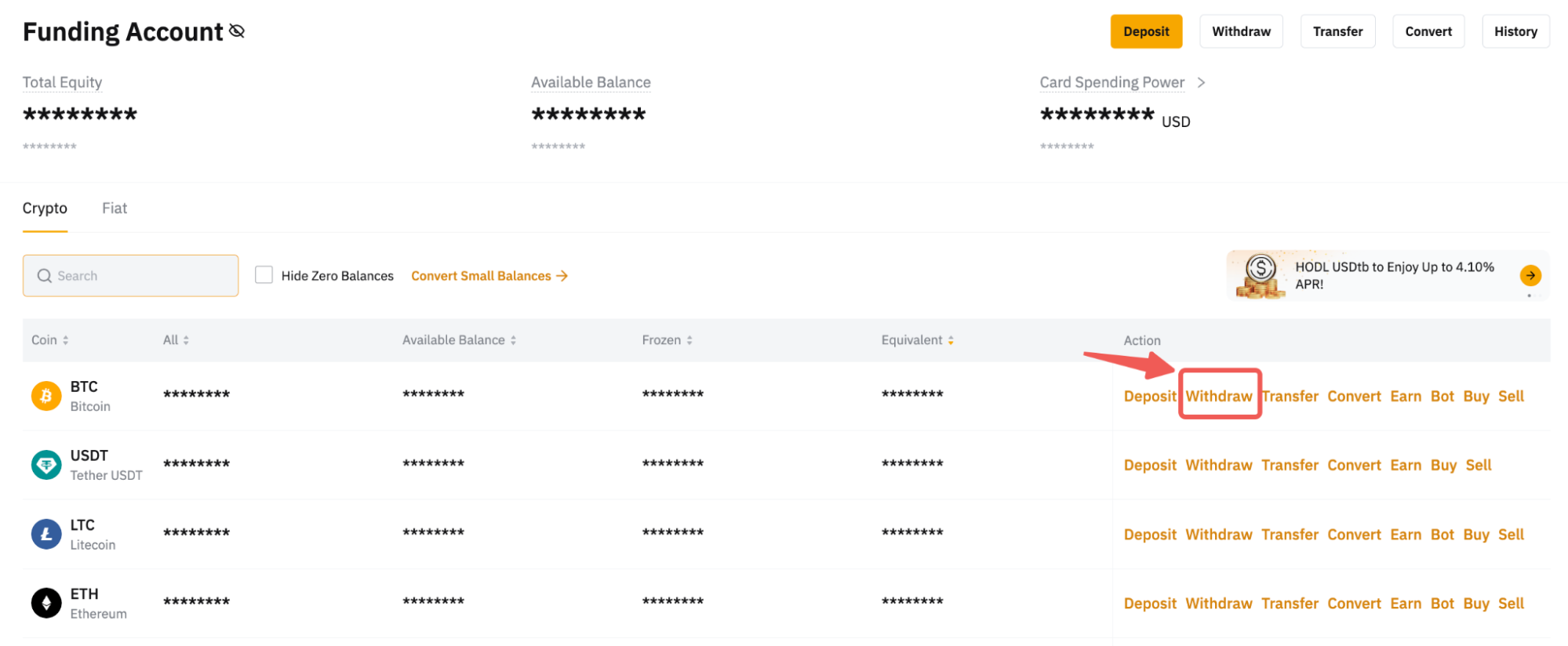 Alternatively, you can also click on Assets at the top right-hand corner of the home page and go to your Funding Account. Then, click on Withdraw in the column of the coin for which you wish to add the wallet address.