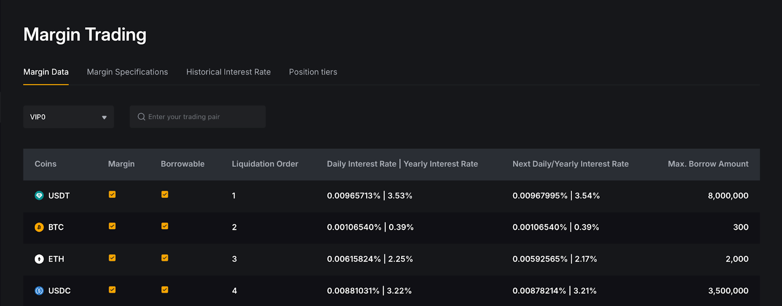 يرجى ملاحظة أن معدلات الفائدة تتغير يوميًا. بالإضافة إلى ذلك، سيتمتع كل مستوى VIP بمعدلات فائدة يومية وسنوية مختلفة. يمكنك الرجوع إلى معدل الفائدة اليومي، معدل الفائدة السنوي والحد الأقصى للمبلغ الذي يمكن اقتراضه لكل عملة هنا.