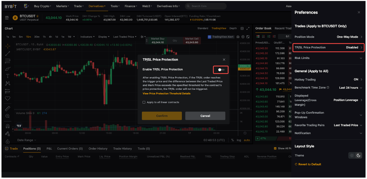 Step 3: You can activate/deactivate the options based on your personal preference. You should receive a push notification if your TP/SL is not triggered due to TP/SL Price Protection.