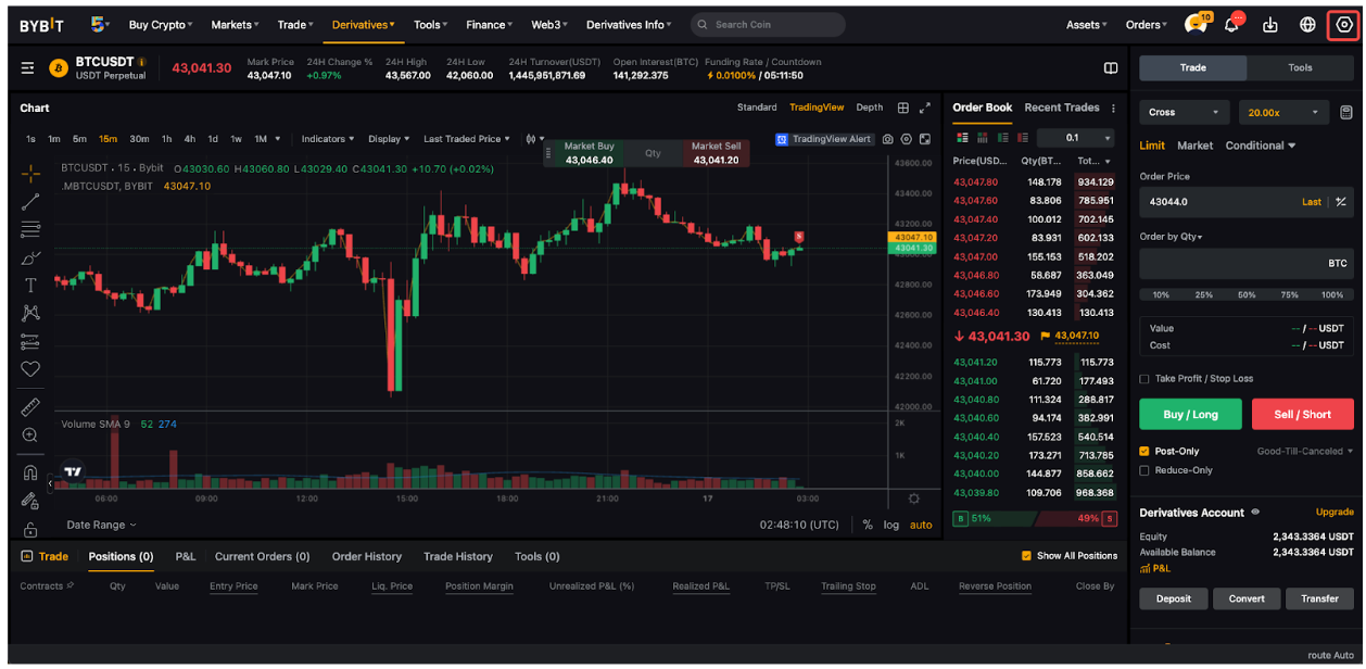 Step 1: Launch the Bybit App and go to the Derivatives trading page of your preferred trading pair.