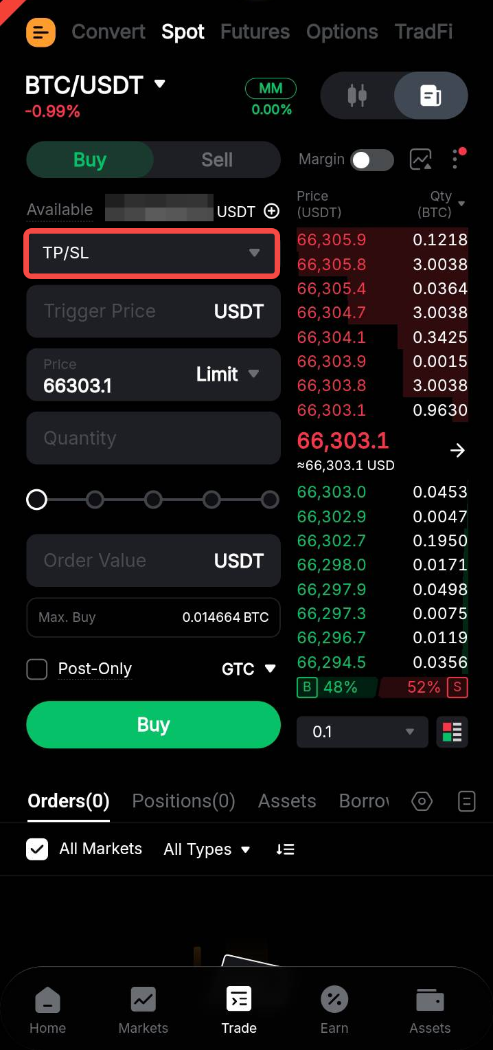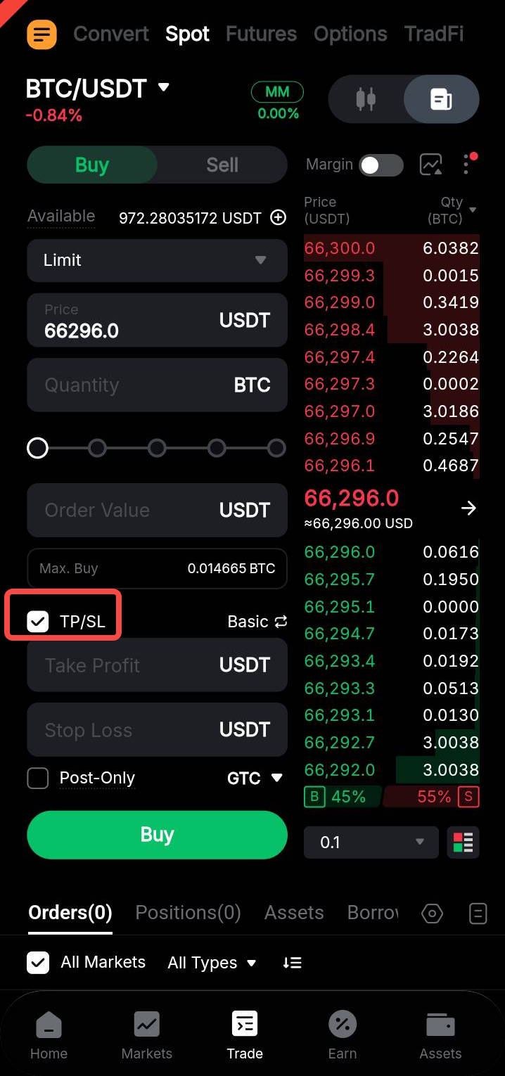 Take Profit and Stop Loss (Spot Trading)