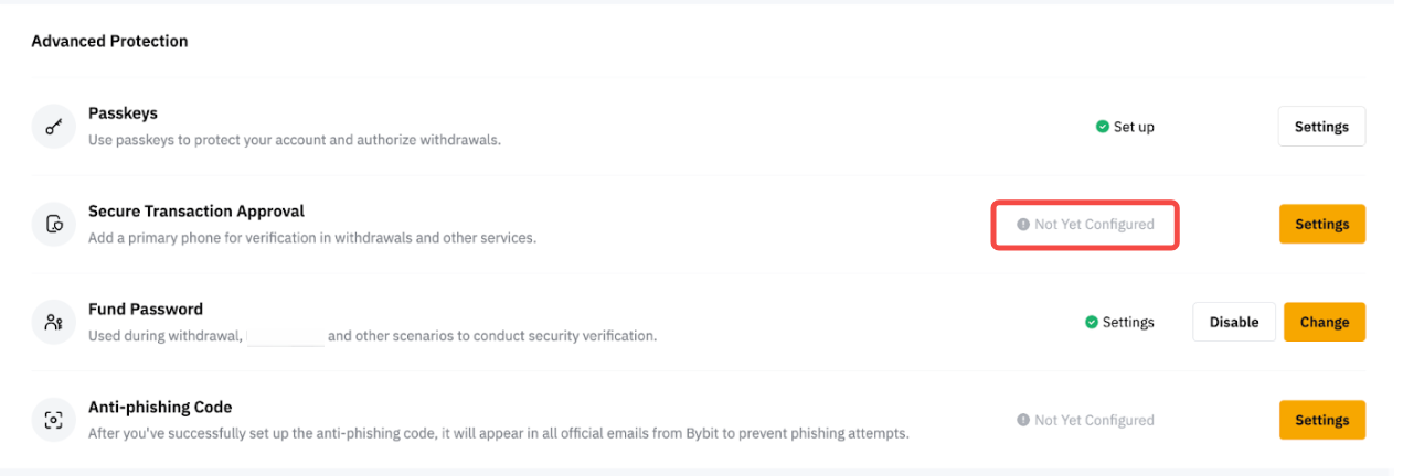 Secure Transaction Approval can only be activated via the Bybit App. Please follow the steps below: