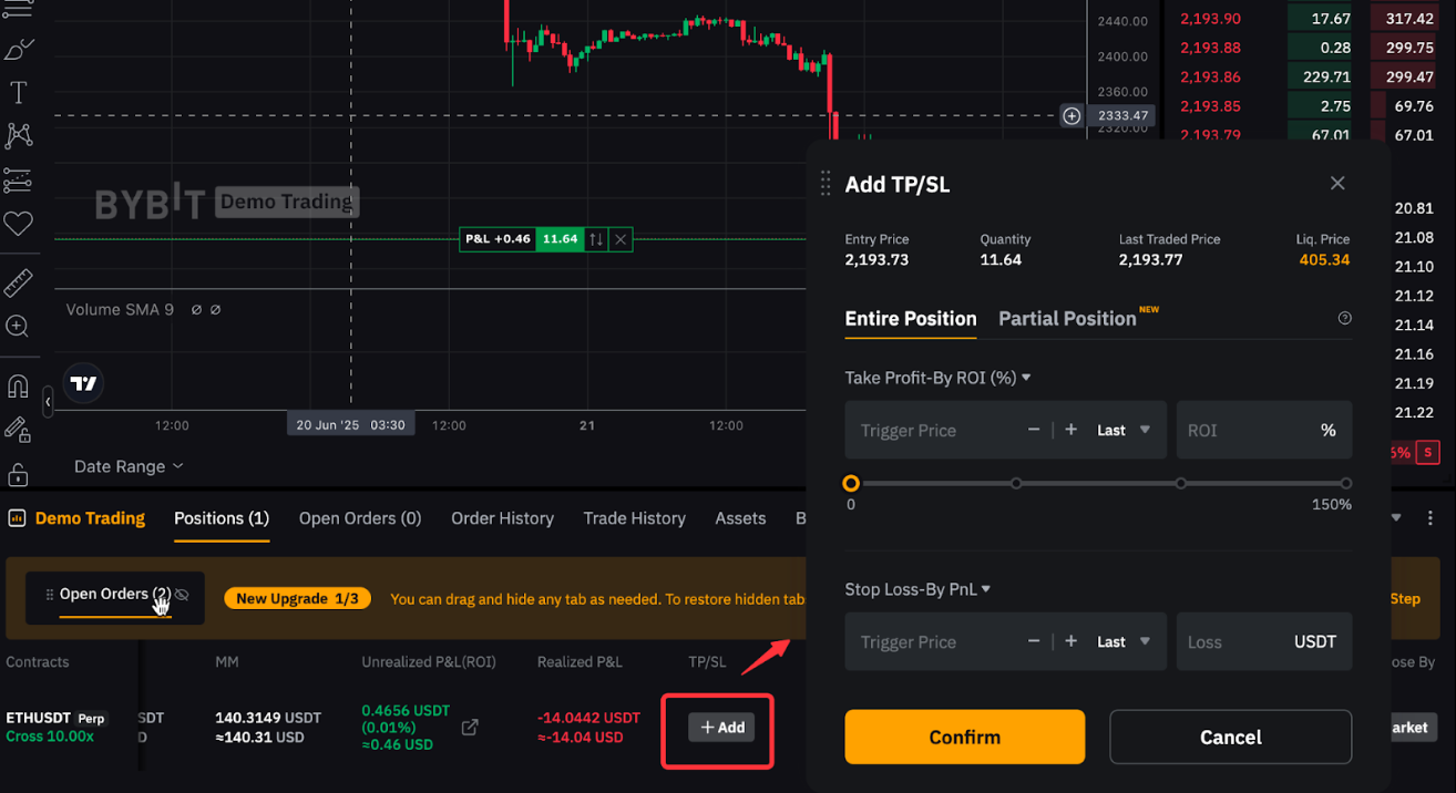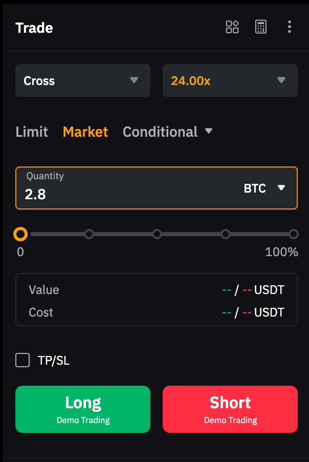 A TP/SL order allows you to set a target price to trigger a close order to secure profits or limit losses. For more details, refer to Introduction to Take Profit and Stop Loss (Perpetual and Futures Contracts).