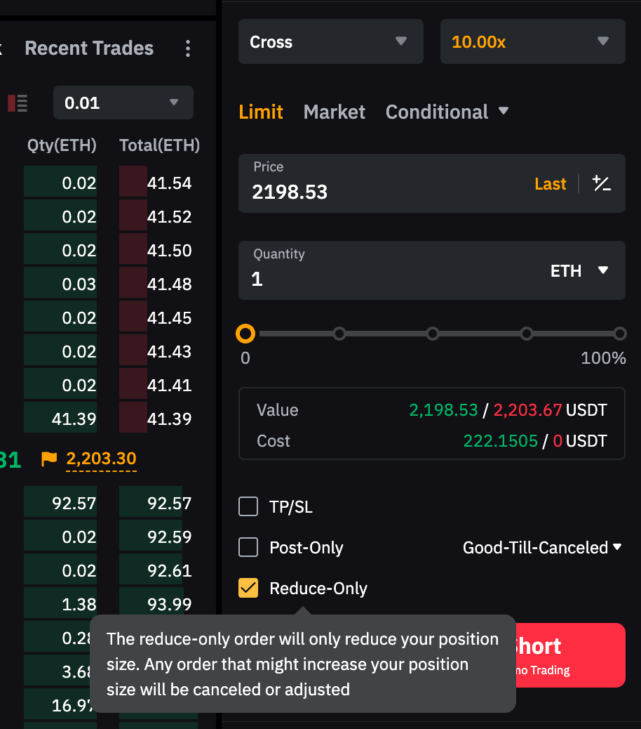You can also use advanced order tools to close positions. Ensure Reduce Only is selected to avoid unintentionally opening new positions. For more details, please refer to the respective guides: