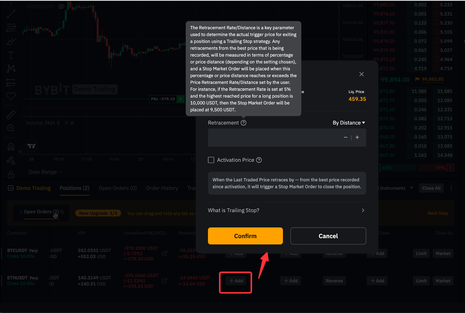 A Trailing Stop order dynamically adjusts the stop price with market movements, helping you lock in profits while limiting potential downside risk. For more details, refer to Trailing Stop Orders (Perpetual and Futures Trading).