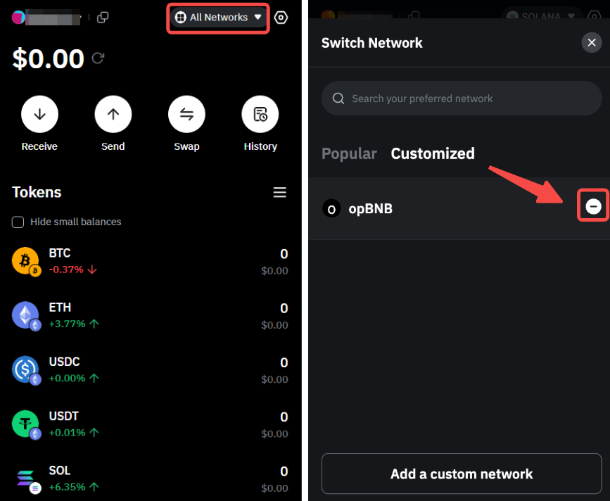 Paso 1: Para añadir una red personalizada, abre la extensión Bybit Wallet y haz clic en Todas las redes → Añadir una red personalizada.