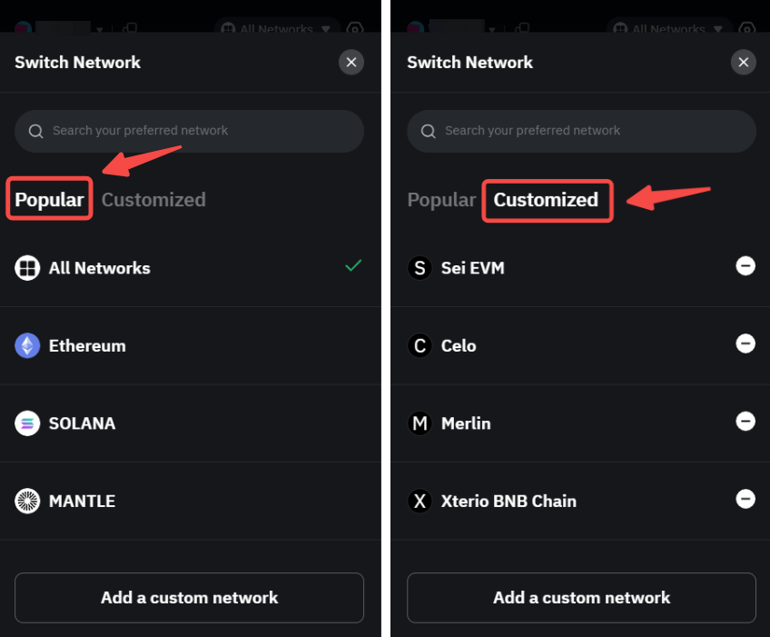 Paso 2: Localiza la red personalizada de tu interés y haz clic en ella para cambiar a esta red.