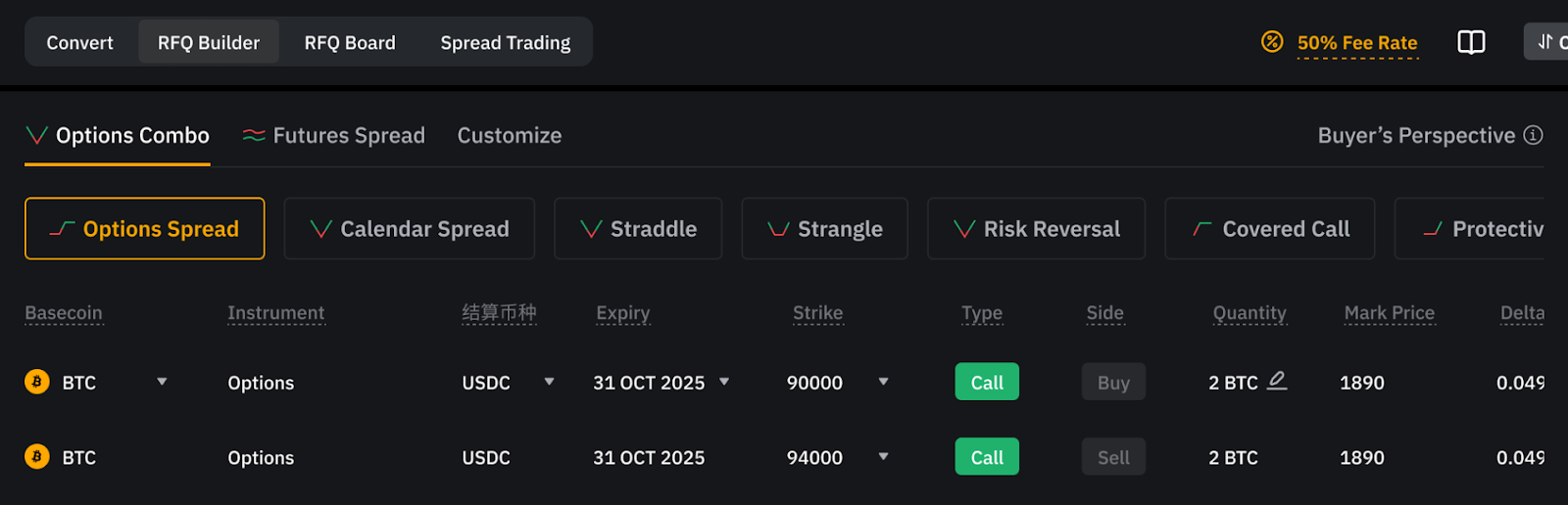 RFQ Builder: Crea estrategias y envía RFQ a los proveedores de liquidez.