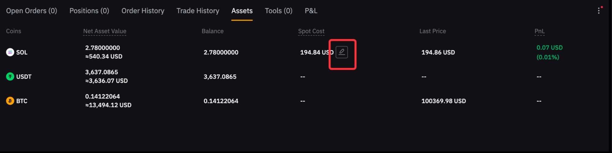 Bybitでは2025年2月12日以降に当プラットフォームで収集されたデータを使用して現物コストを計算します。表示されているコストが実際のコストと一致しない場合は、手動で調整できます。