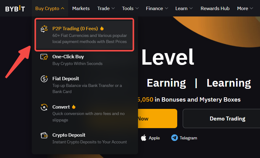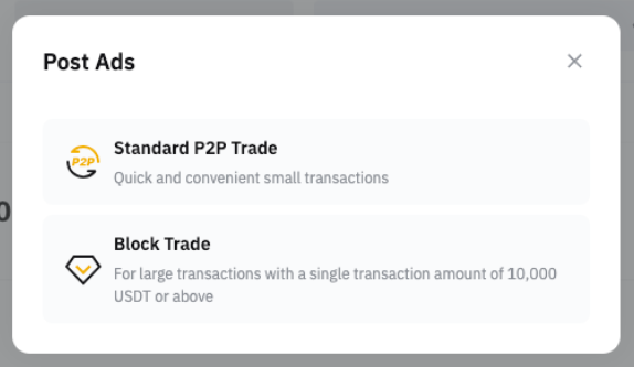Step 3: Click either P2P Trading or P2P Block Trade. For eligibility for posting an advertisement, please refer to this page.