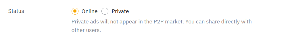 2. Non-Public: The ads will not be displayed on P2P advertisement page and is only accessible to traders with the QR code or the URL link.