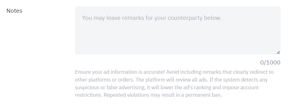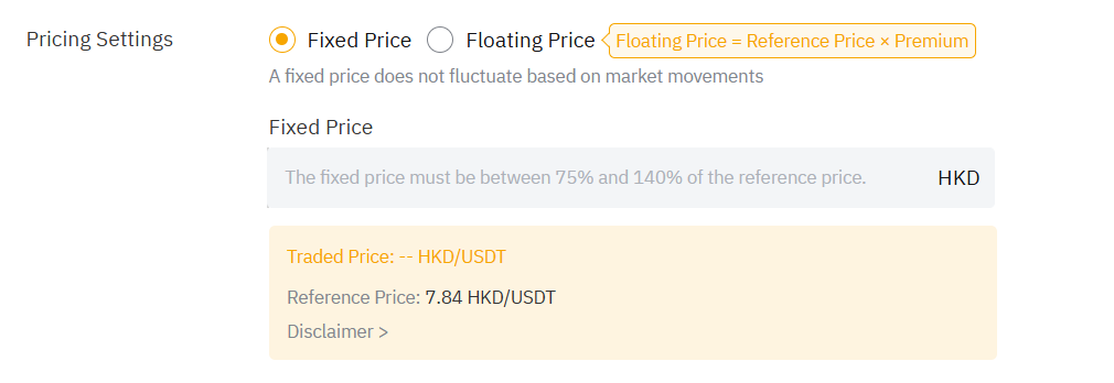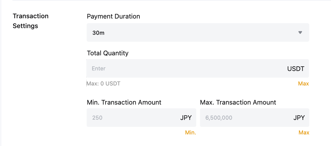 • To learn more about the minimum and maximum amounts of USDT that can be traded per ad, please refer to P2P Order Limits.
