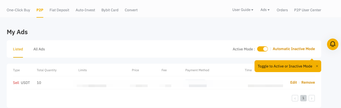 Congratulations! Your ad is now successfully listed. Please remember that advertisers are expected to be online and available to respond promptly to counterparties and engage in negotiations in a timely manner when the advertisement is in active mode. To learn more about managing the visibility of your advertising, please refer to this article.