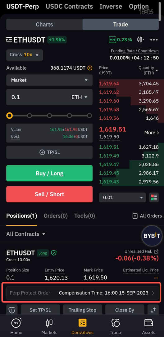 • O Perp Protect é atualmente suportado apenas no aplicativo da Bybit.