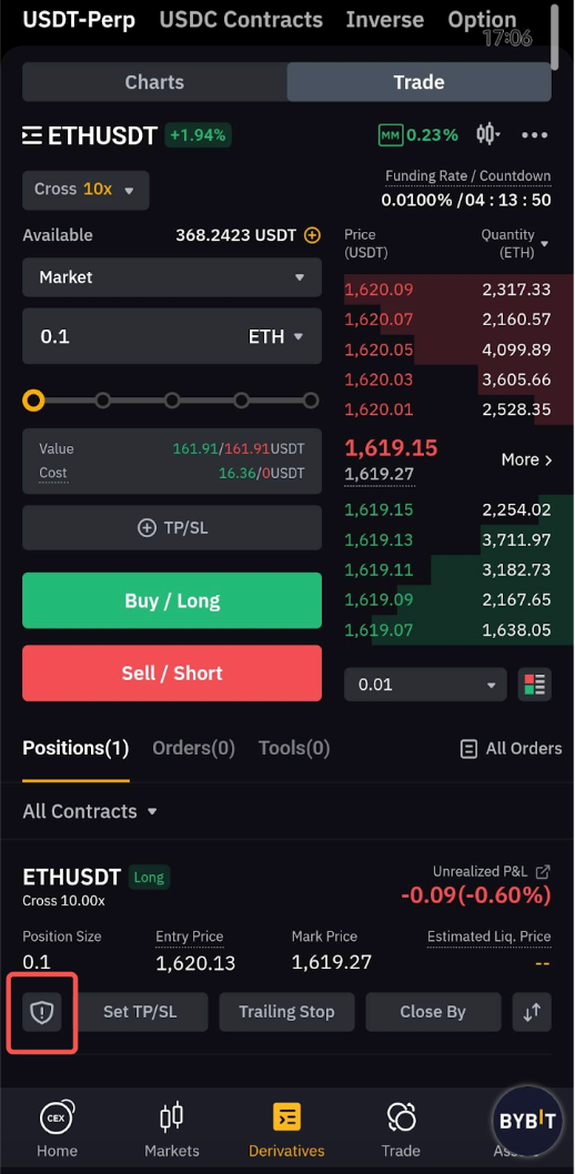 1. Vá para a aba de posição do contrato perpétuo correspondente e localize o ícone do escudo.