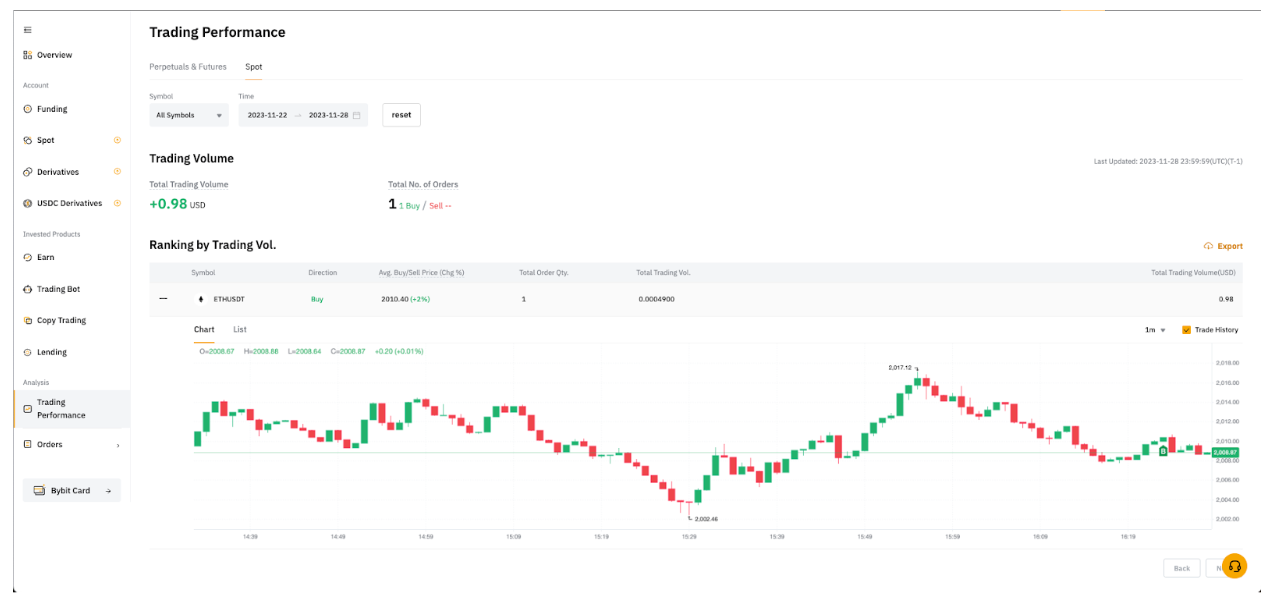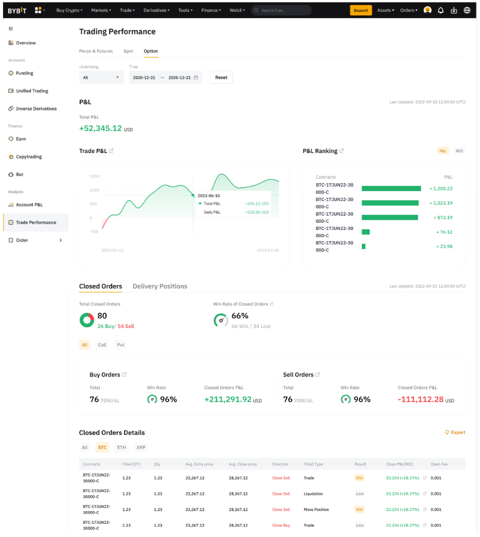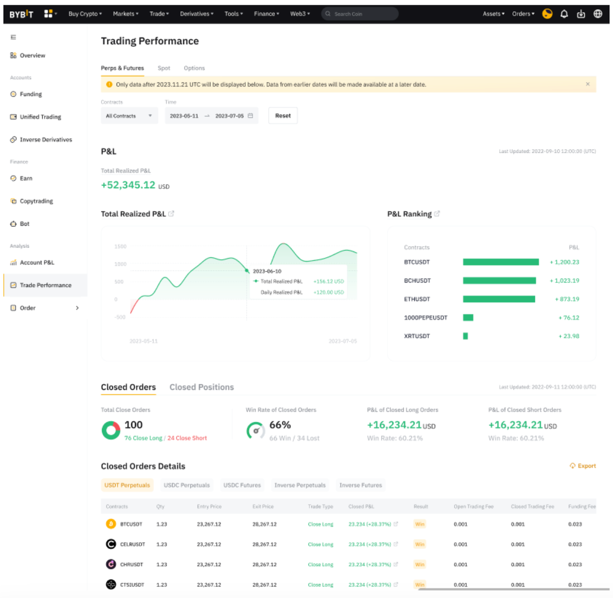 Hiện tại, dữ liệu hiệu suất giao dịch cho Quyền Chọn chỉ dành cho người dùng Tài Khoản Giao Dịch Hợp Nhất (UTA), những người có tài khoản có thể xem được ở chế độ Ký Quỹ Cô Lập, Ký Quỹ Chéo và Ký Quỹ Danh Mục.