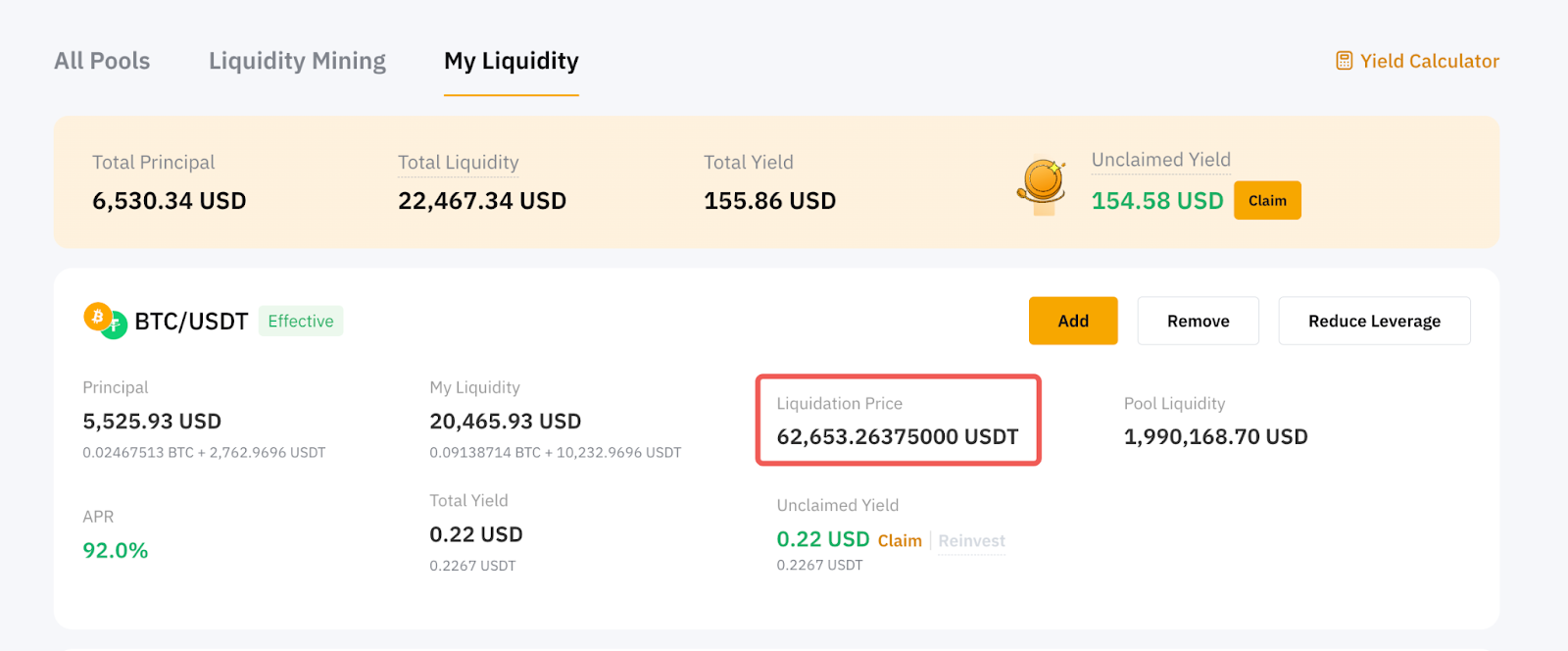 对于流动性供应商而言,产品计划一旦启动,相当于每个订单成功提交后约五分钟后,就会产生实际强平价格。您可前往我的流动性查看强平价格。